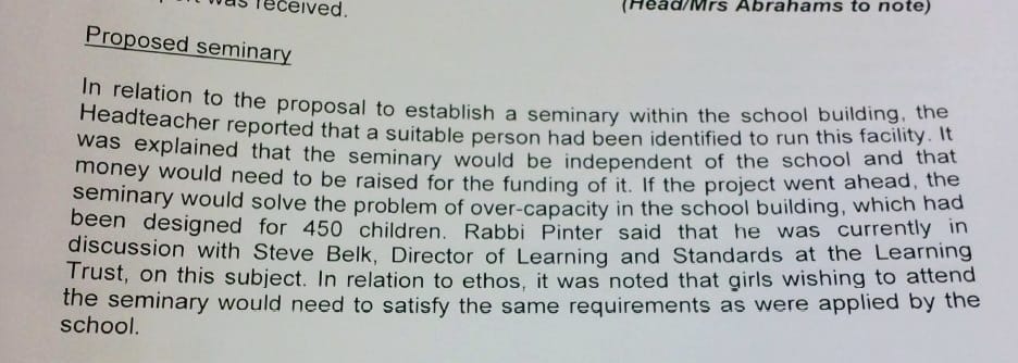 Chaim Pinter is not a member of the Stamford Hill community and does not live locally. He has no experience in Charedi girls’ education, no relevant experience in heading a boys’ school and no experience at all in local Stamford Hill Schools. But a surname can make a difference and for that alone he was parachuted into the top job, with no prior advertising of the vacancy, and then handed the crown jewels.
