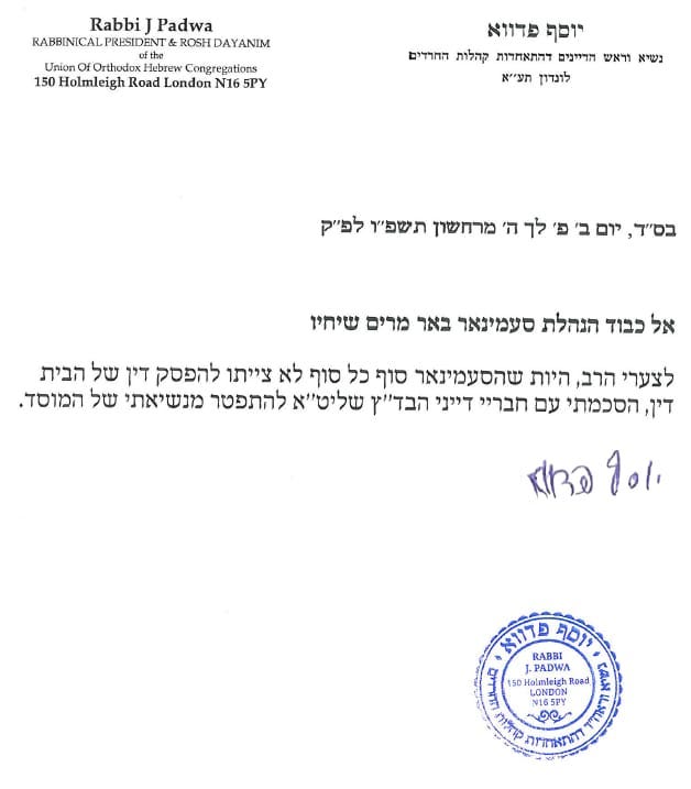 Reb Yossel Padwa resigns “with great pain” from the rabbinical leadership of the Be’er Miriam seminary after they refuse to abide by a Beth Din ruling. The reason is reportedly related to admissions. Who would have guessed?