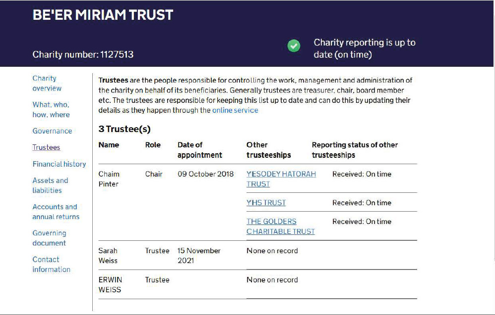 YHS is effectively under the total control of Chaim Pinter, 3rd gen of the Pinter dynasty, who has slithered his way to the top after effectively appointing himself to the top job of Principal and taken full control of the areas of the school that matter including admissions. Chaim Pinter was also until recently a trustee of the Be’er Miriam Seminary (see above) and his mother in law heads the seminary.
